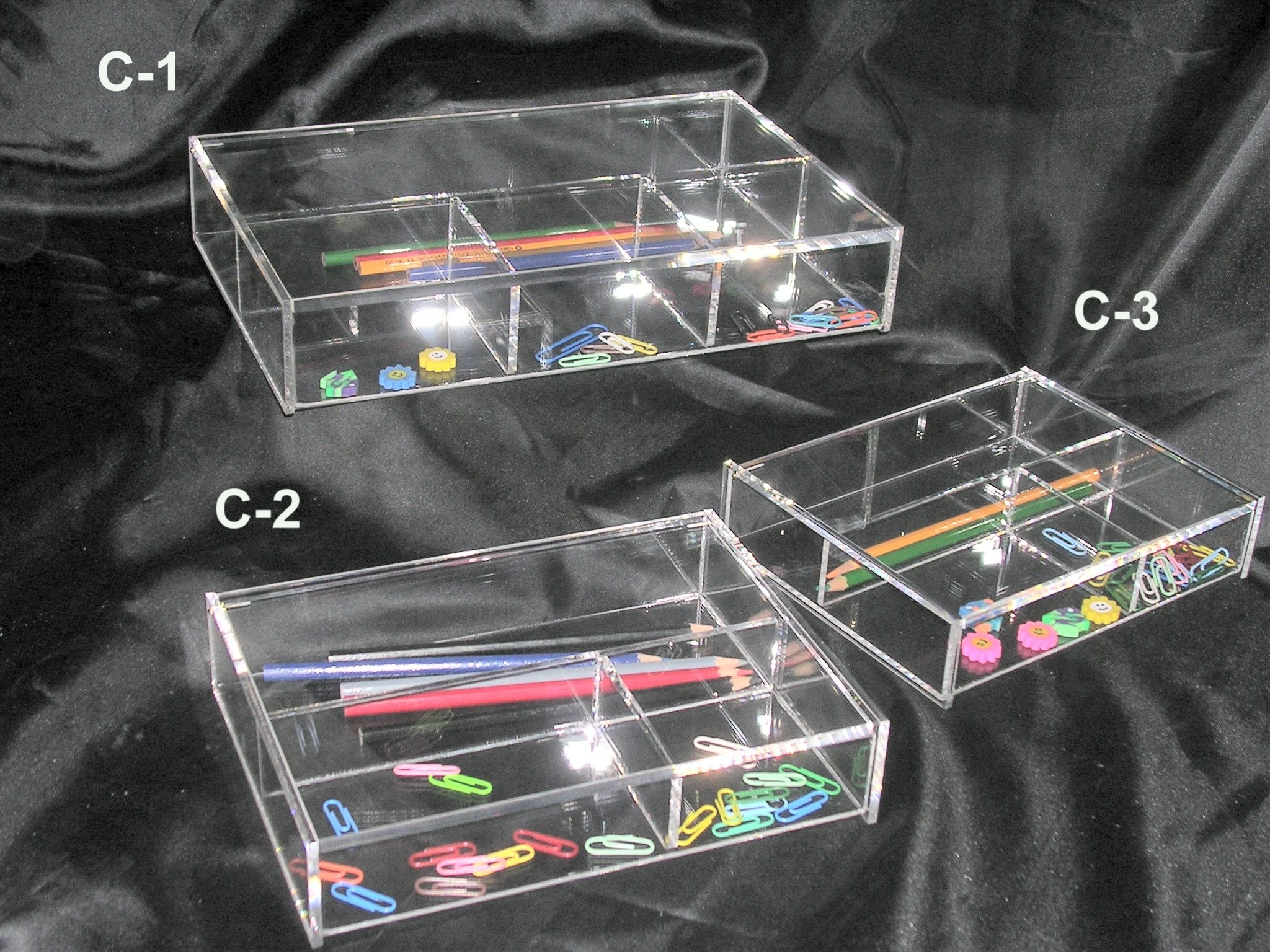 Caja con departamentos varios, tapa abatible, tres medidas.
