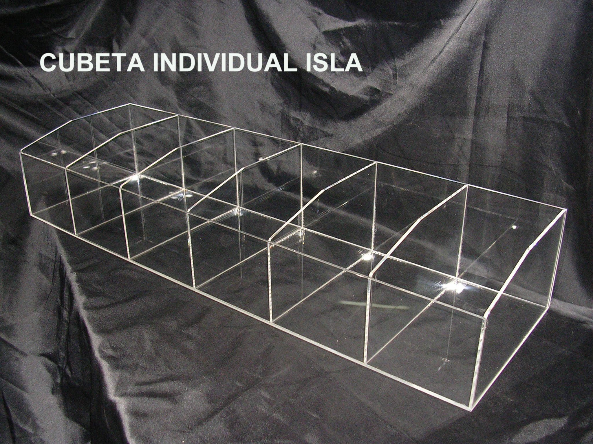 Cubeta contenedor grande, con departamentos, ideal para colocar sobre muebles, para la colocación de las bolsas (pipas, kikos, gusanitos, etc) en los montajes de tiendas de caramelos.