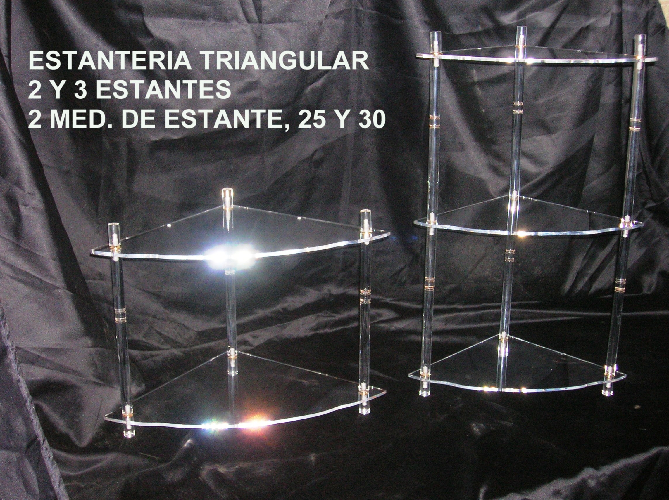 Estantería triangular rincón 2 medidas. A pared, de 2 y 3 estantes.