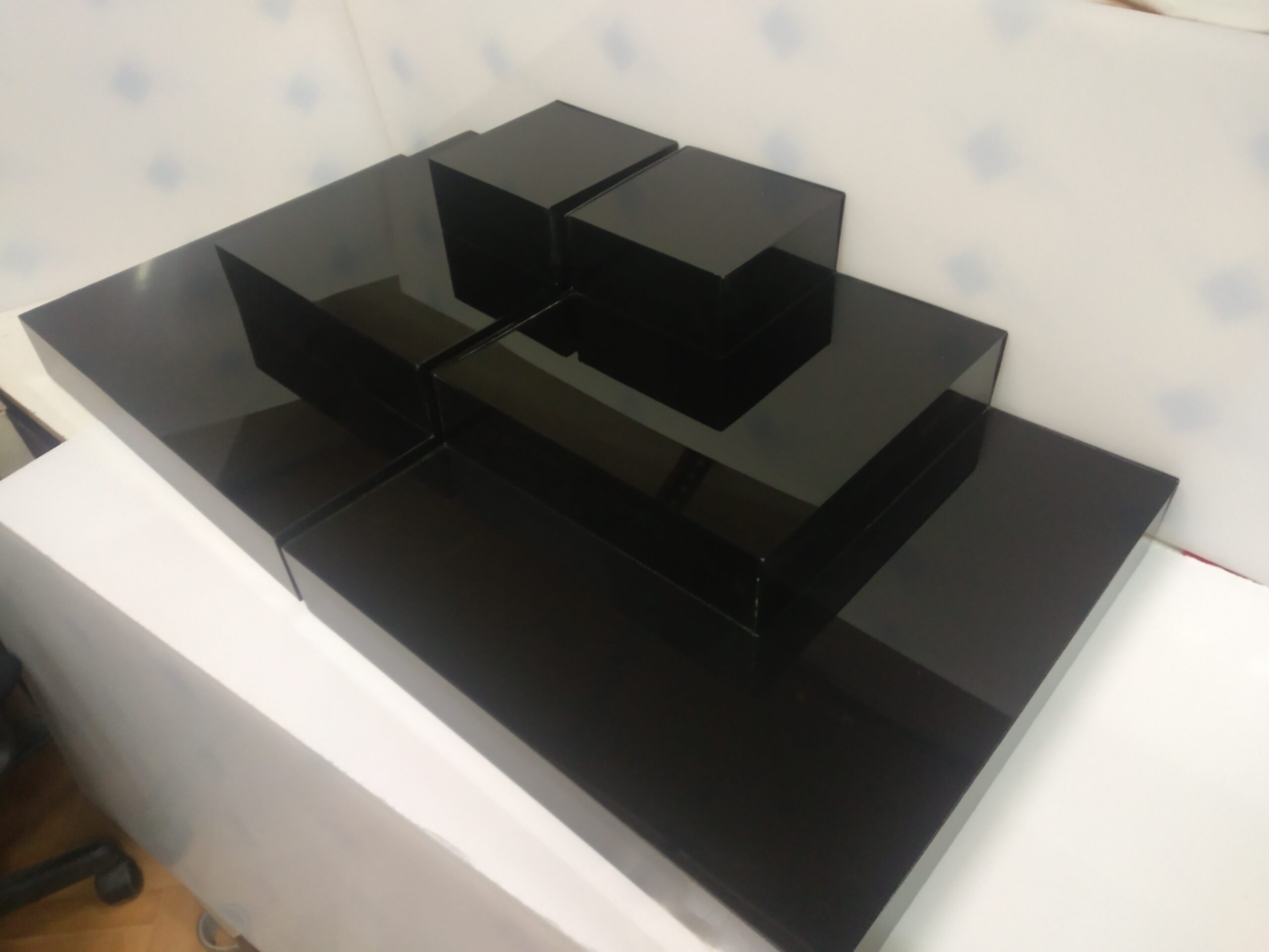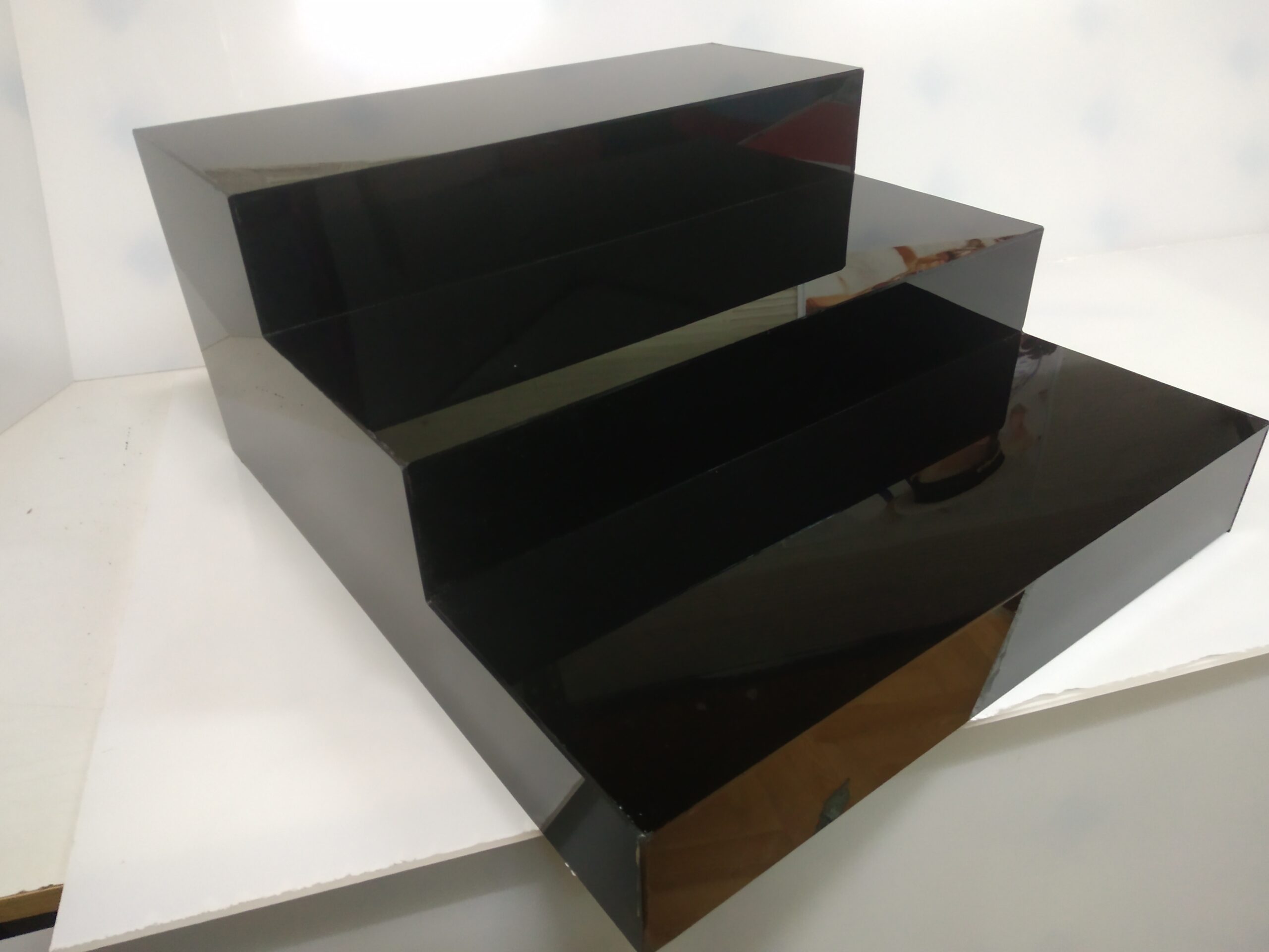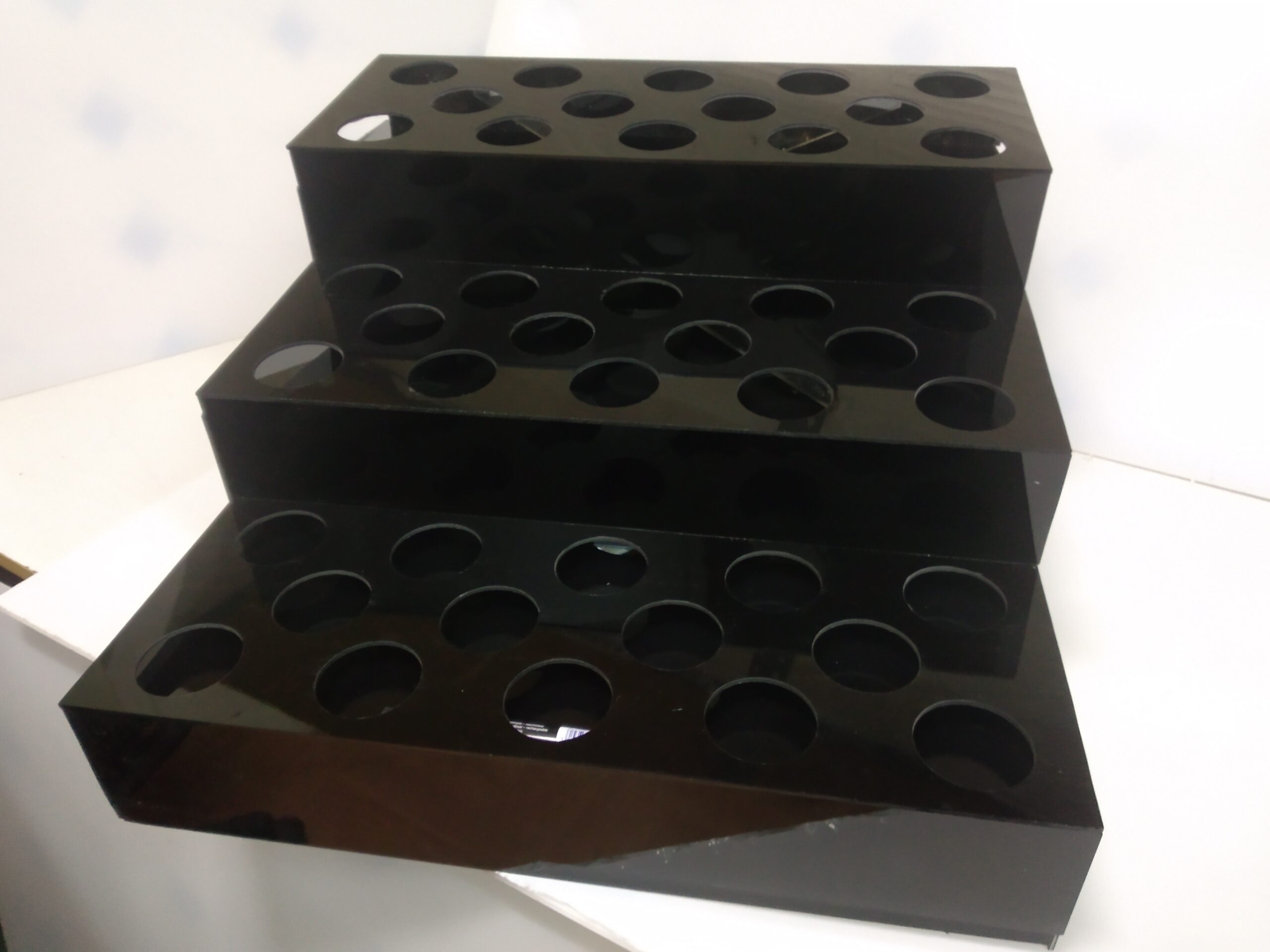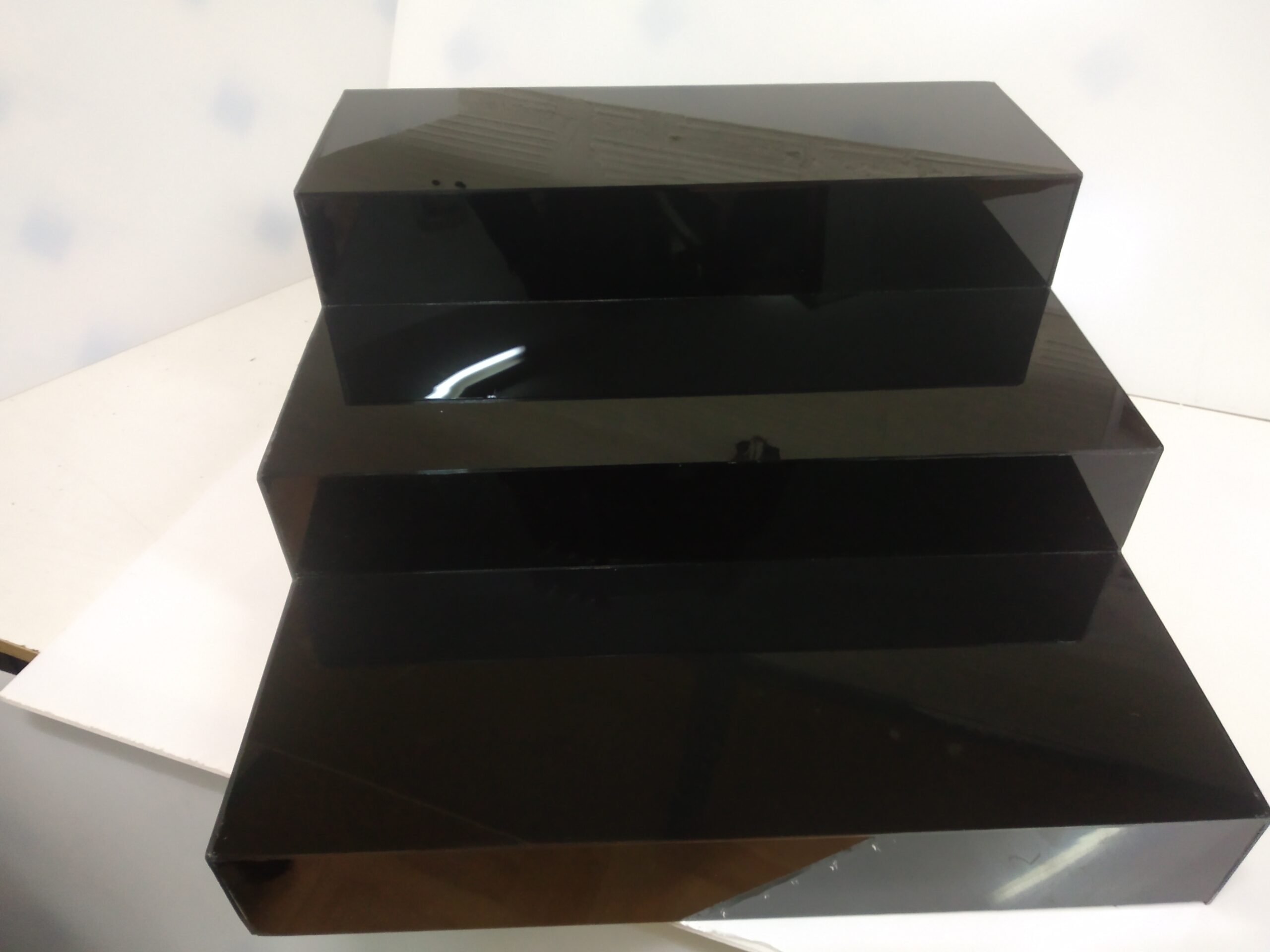 expositores ideales para paradas de mercado. realizado en metacrilato de colada y a medida. en colores negro, blanco y transparente.