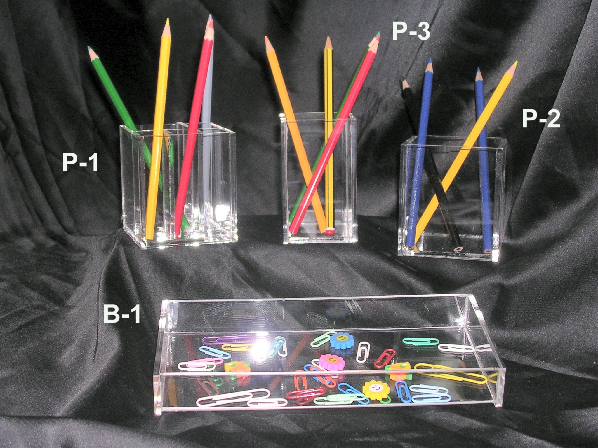 Cubiletes para lápices, bolis. Con o sin departamentos. Varios modelos y medidas.